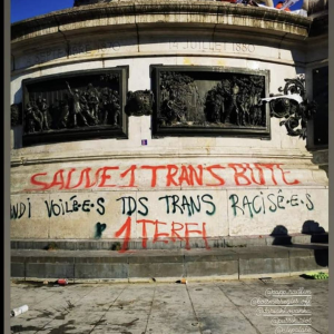 — l’effacement du mot « femme » et du concept de sexe par des transprosélytes qui agressent des féministes et des lesbiennes.